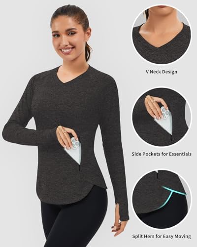 The side split hem design enhances your range of motion, perfect for walking, stretching, and running errands. The curved hem provides flattering coverage over leggings and jeans, ensuring that it won’t ride up as you move.